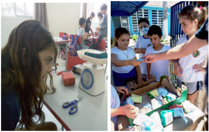 Figura 7: Pesagem para informação no produto final e vendas na banca do sabão para a comunidade.