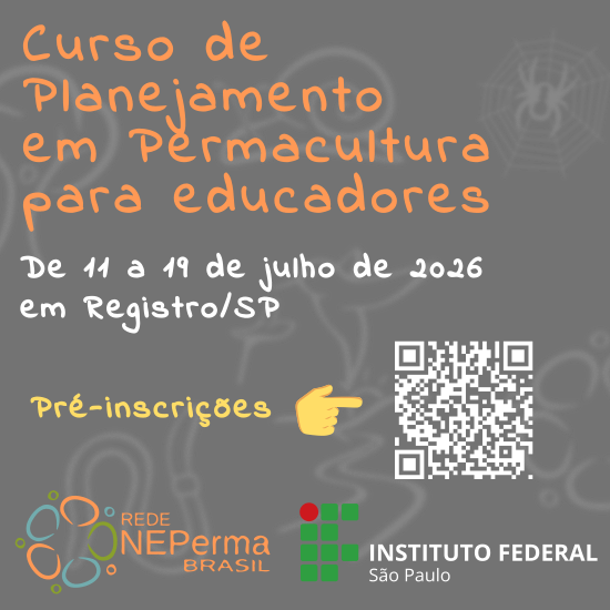 A Rede NEPerma Brasil em parceria com o Instituto Federal de São Paulo está organizando o 5º Curso de Planejamento em Permacultura (CPP) para educadores, que ocorrerá no período de 11 a 19 de julho de 2026, no campus do IFSP em Registro e sítio Porto do Sol – Pariquera-Açu, com carga horária total de 72 horas (9 dias) com certificação.